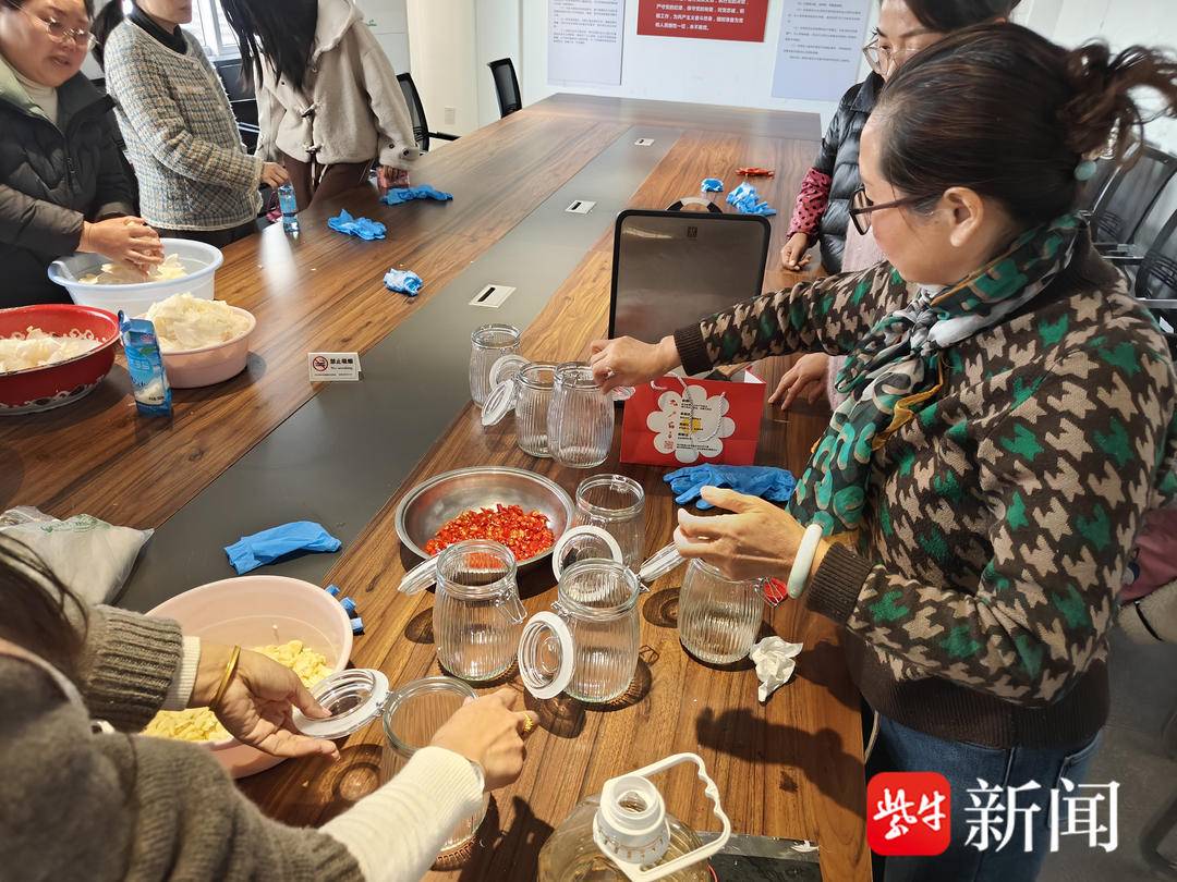 活动伊始,几个志愿者一起动手,将准备好的白萝卜洗净,砍去头尾并切成薄片。而经验丰富的妇女组长们已经自动分好组,将要用到的辣椒和大蒜切好分装,糖、盐、醋和酱油同样按照重量分成几份备用。